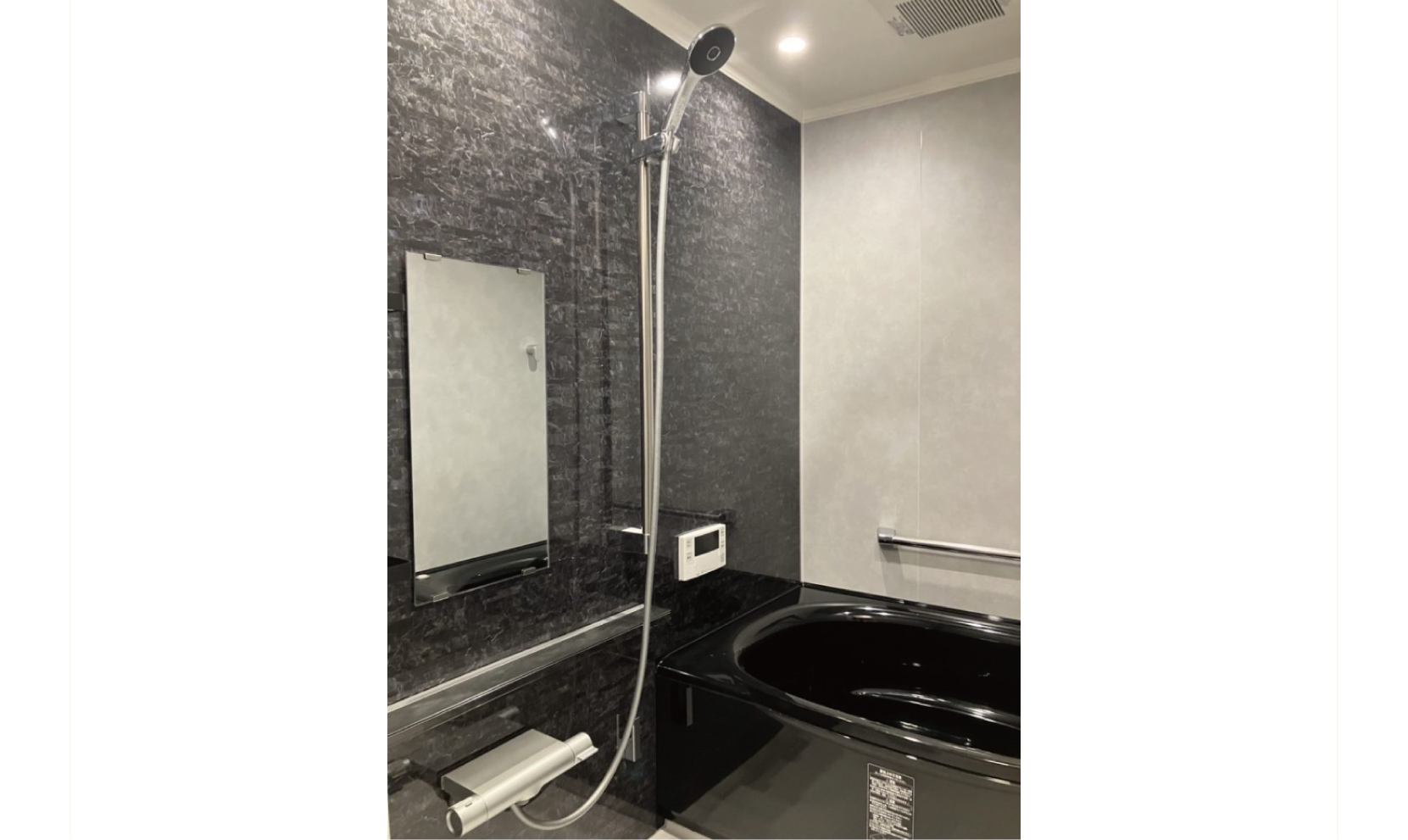 お客さまが一目惚れしたブラックの浴槽が映える高級ホテルのような空間に仕上げました。