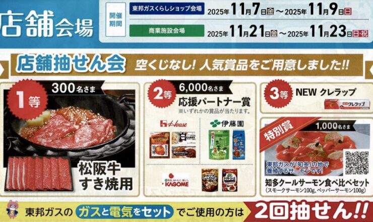 \空くじなし!豪華賞品が当たる🎯/ 東邦ガスの「ガス展」in岡崎北店(山本商店) 会場:岡崎北店 (山本商店/岡崎市材木町2-44) 日時:11...